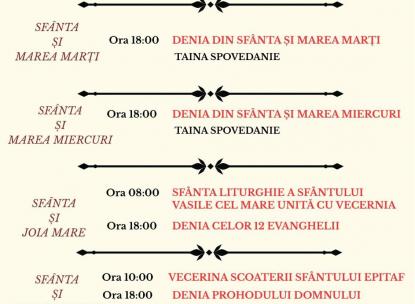PROGRAM LITURGIC SĂPTĂMÂNA SFINTELOR PĂTIMIRI